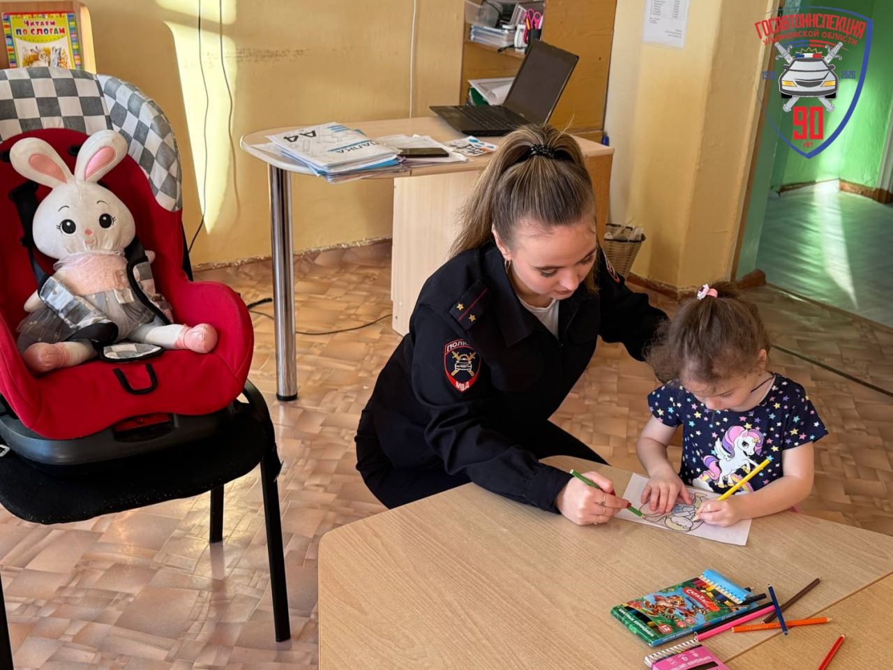 В детском саду «Колосок» Майнского района инспектор по пропаганде БДД использовала наглядный пример с игрушкой, чтобы показать детям, что может произойти при резком торможении автомобиля без использования автокресла. Этот метод вызывает у ребят положительный эмоциональный отклик и закрепляет важность использования автокресел для безопасности во время поездок.
