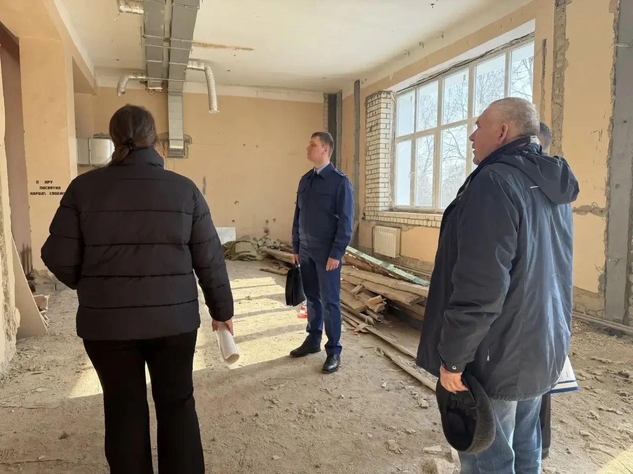 В рамках надзорных мероприятий прокурор района Нагорный В.А. изучает ход выполнения работ по капитальному ремонту здания Дома культуры в селе Большое Нагаткино.