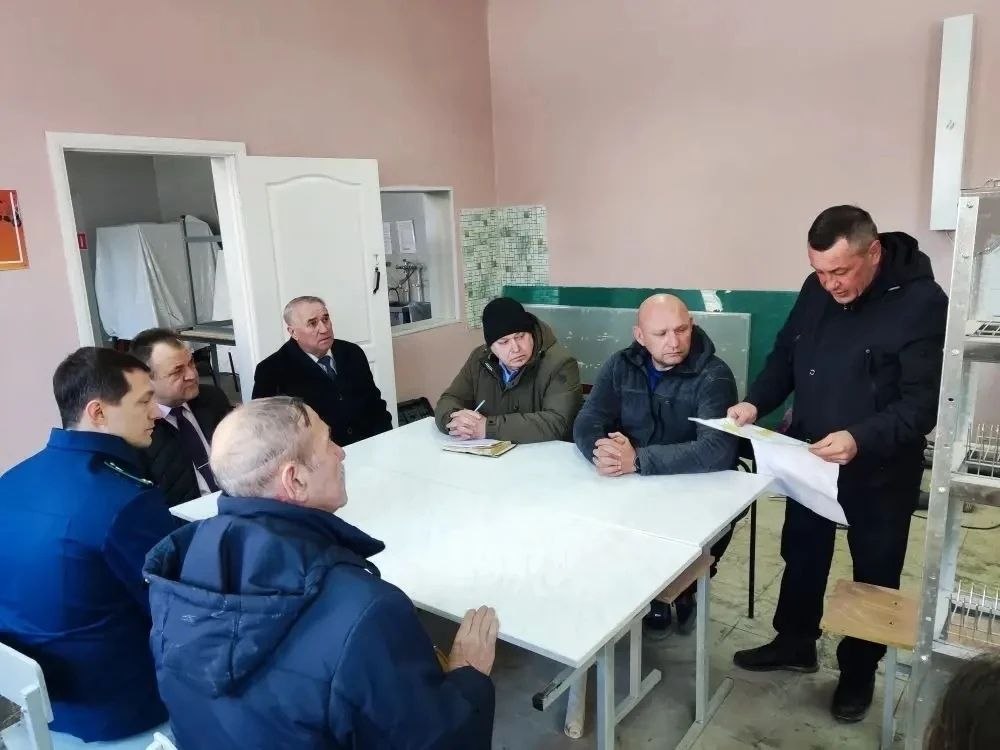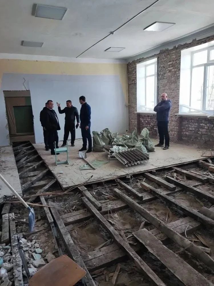 В рамках надзорных мероприятий прокурор района Бакшев А.А. изучает ход капитального ремонта здания МОУ "Средняя школа г. Сенгилея имени Н.Н. Вербина".