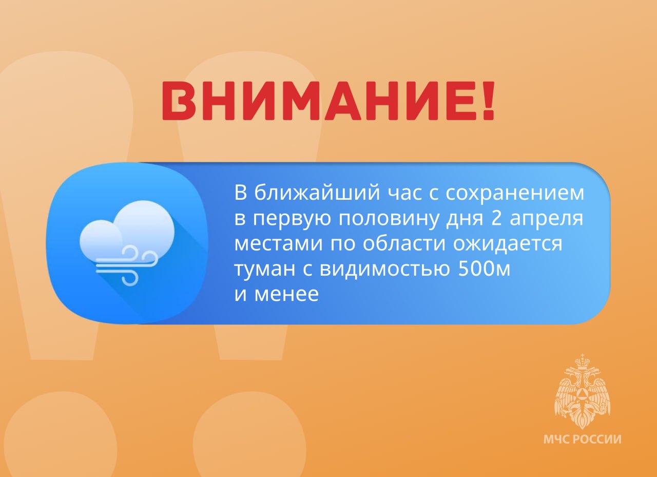 В ближайший час с сохранением в первую половину дня 2 апреля местами по области ожидается туман с видимостью 500м и менее.