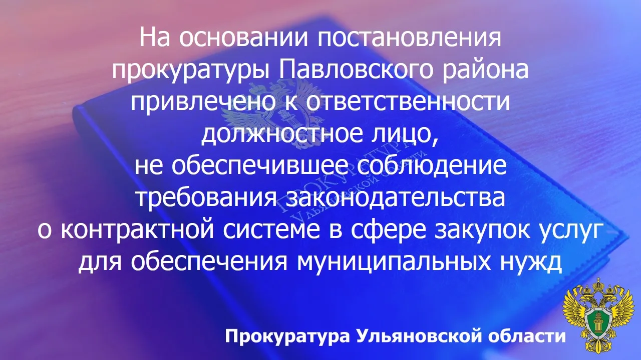По результатам рассмотрения возбужденного прокурором Павловского района Ульяновской области дела об административном правонарушении по ч. 9 ст. 7.30.1 КоАП РФ (нарушение заказчиком, оператором электронной площадки, оператором специализированной площадки, кредитной организацией установленных законодательством Российской Федерации и иными нормативными правовыми актами о контрактной системе в сфере закупок требований к порядку либо сроку размещения информации и документов или направления их для размещения в реестрах, предусмотренных указанными законодательством и нормативными правовыми актами, либо неразмещение информации и документов или ненаправление их для размещения в реестрах, предусмотренных указанными законодательством и нормативными правовыми актами) главный специалист (финансист) администрации муниципального образования «Шмалакское сельское поселение» подвергнута административному наказанию.