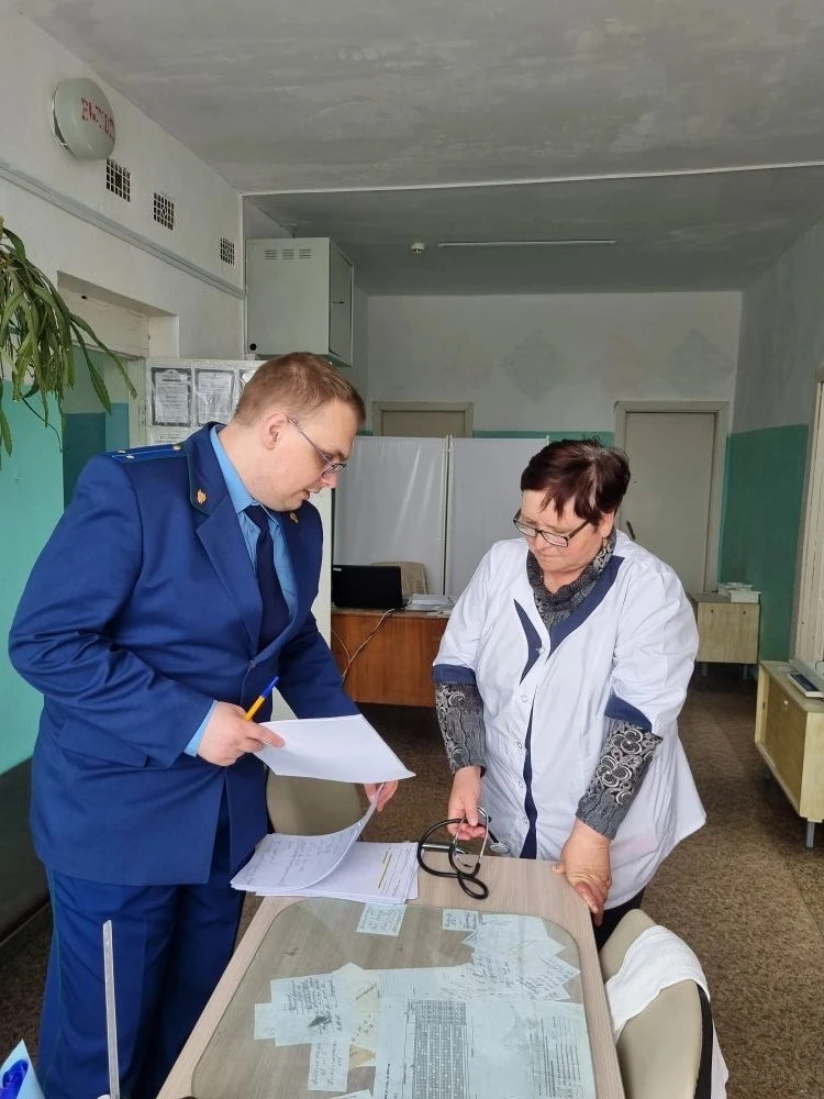 В рамках надзорных мероприятий помощник прокурора района Романов К.Н. в ходе выезда в ГУЗ "Тиинская участковая больница" и ФАП села Слобода-Выходцево особое внимание уделил вопросам соблюдения законодательства о санитарно-эпидемиологическом благополучии, потребности учреждений здравоохранения в лекарственных средствах, укомплектованности медицинским оборудованием.