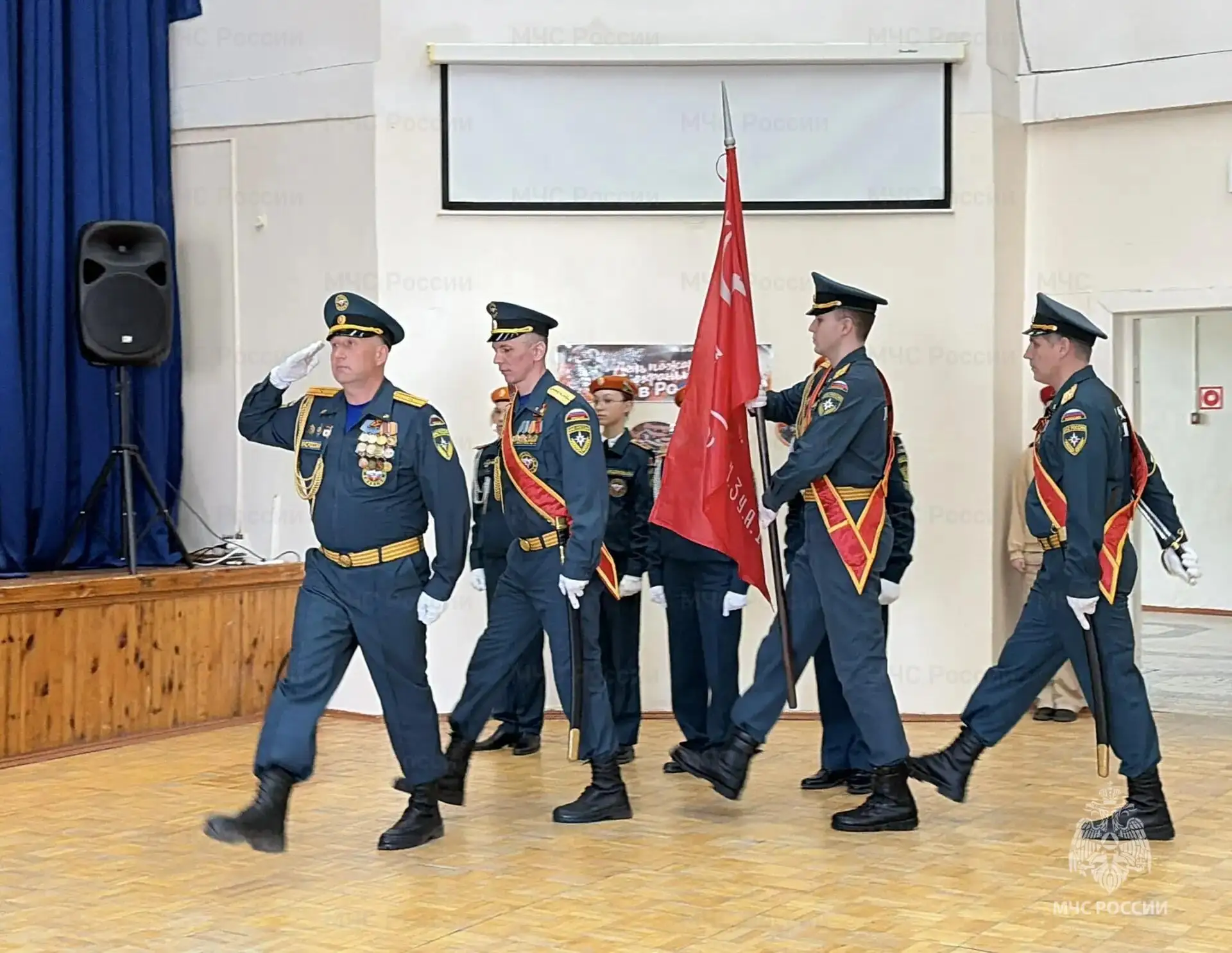 Мероприятие началось с торжественного построения кадетов, на котором присутствовали почётные гости: заместитель начальника регионального МЧС Валентин Мошков, председатель Совета ветеранов пожарных и спасателей Павел Крылов, ветераны службы МЧС России и выпускники школы, представители молодежных общественных организаций.
