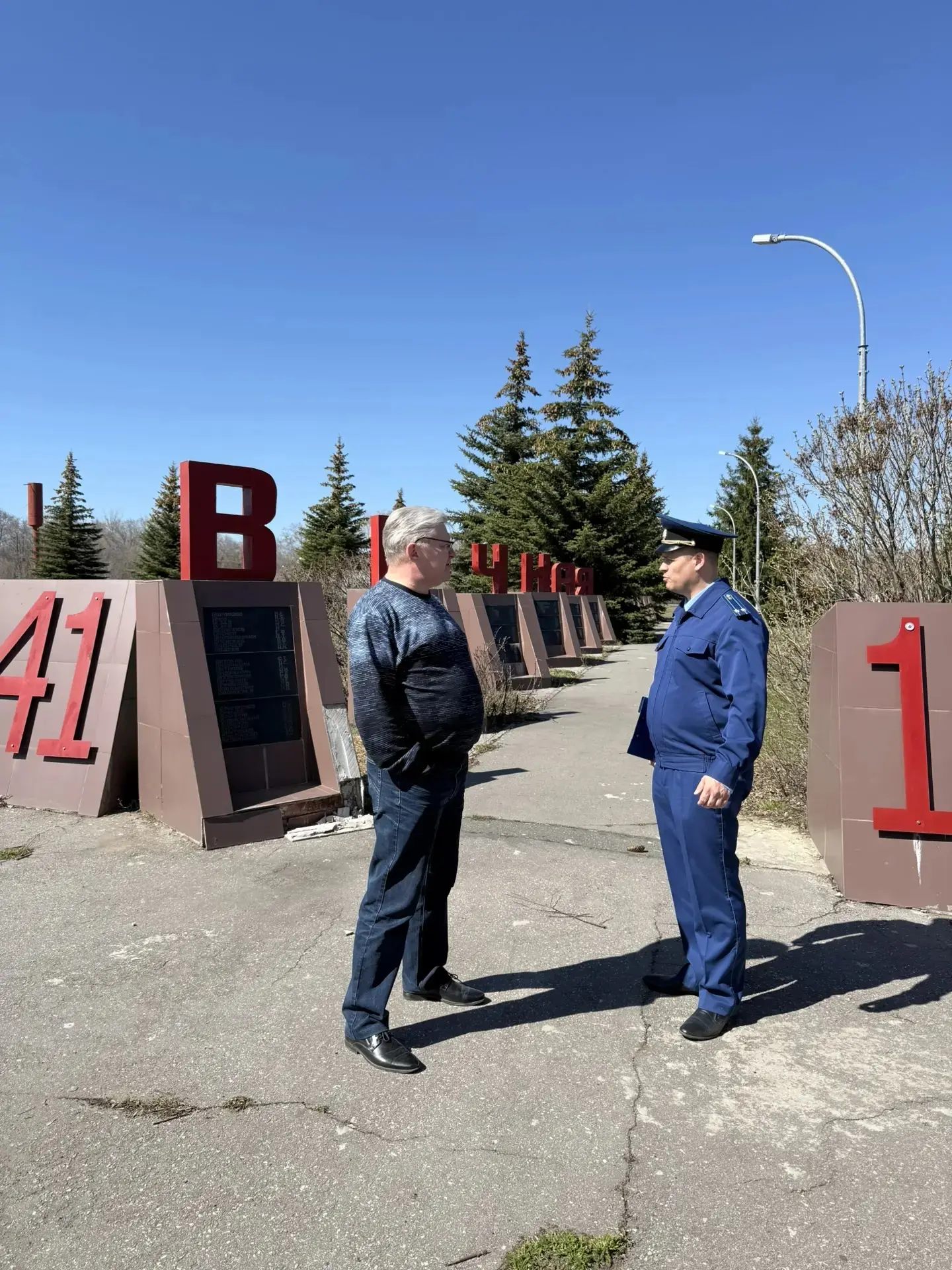 В ходе надзорных мероприятий и.о. прокурора района Хуртин Д.А. во время выезда в парк 55-летия Победы изучил вопросы полноты и качества реализации должностными лицами мер, направленных на увековечение памяти о Советских солдатах, отдавших жизни за Родину в боях с немецко-фашистскими захватчиками.