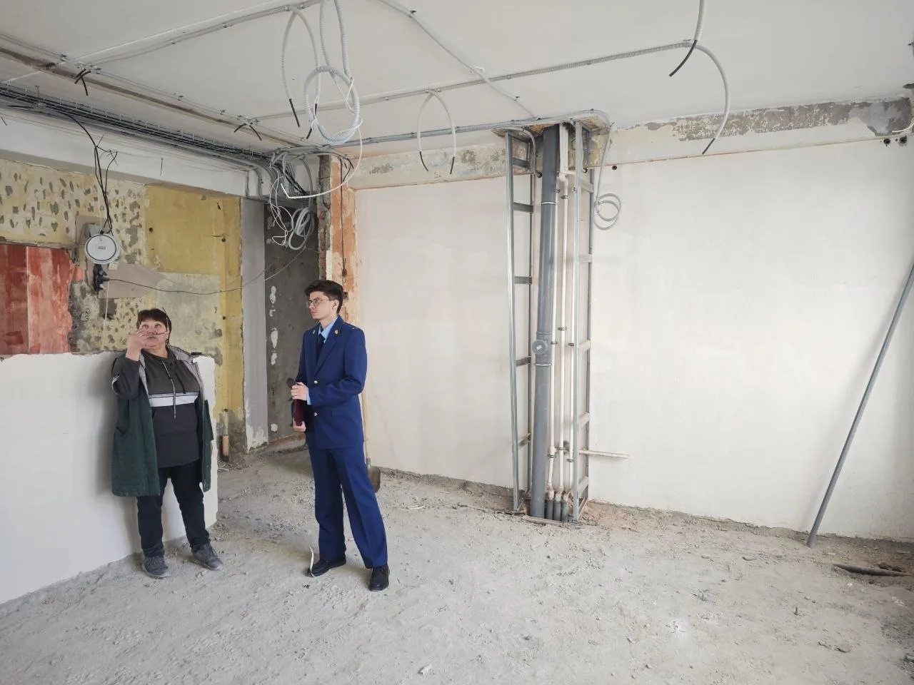 Так, в ходе надзорных мероприятий помощник прокурора города Цветков Д.В. во время выезда оценивает ход капитального ремонта МАДОУ "Детский сад № 47 "Веселинка".