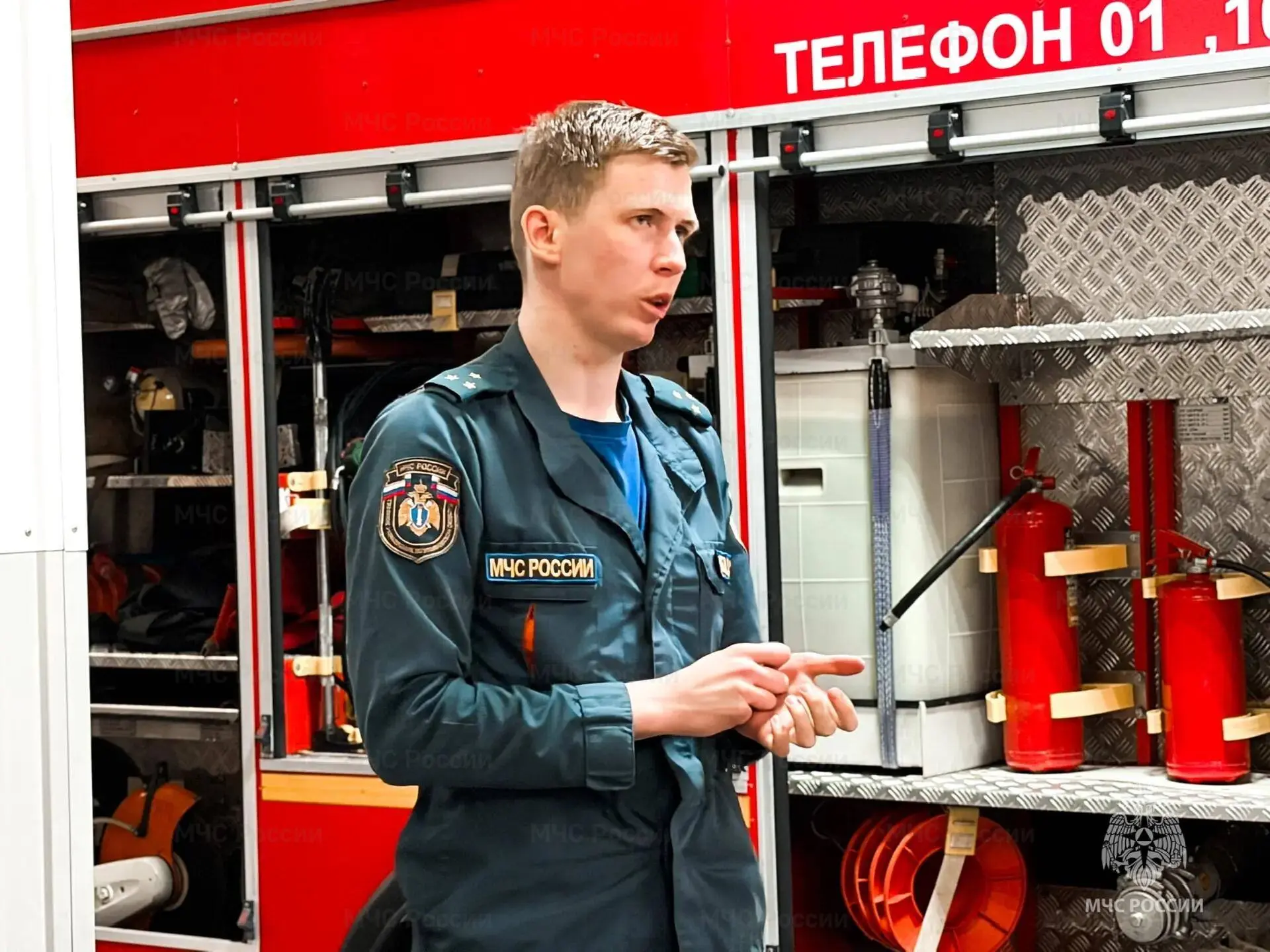 Первым делом для гостей провели подробную беседу о соблюдении мер пожарной безопасности. Пожарные напомнили ребятам о том, как важно не оставлять электроприборы без присмотра, правильно обращаться с огнем в быту и на природе, а также объяснили алгоритм действий при возникновении чрезвычайной ситуации.