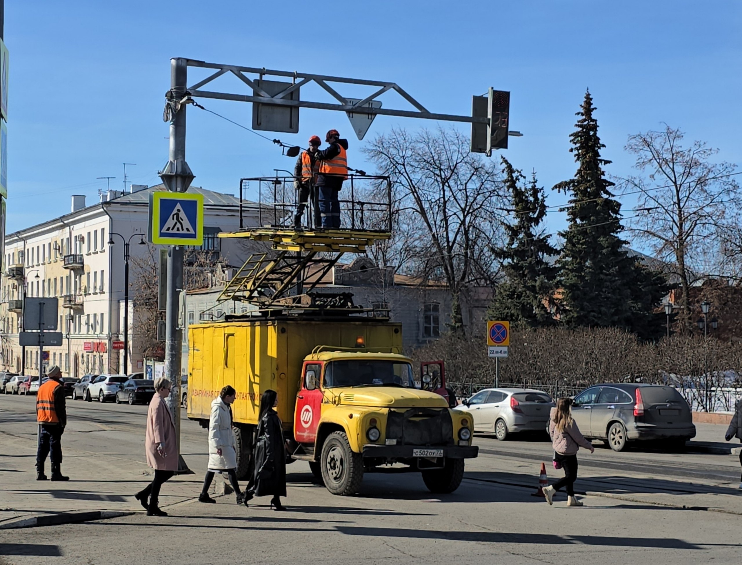 Днём кран-погрузчик задел провод. От удара произошёл обрыв сразу в двух местах — у дома Гончарова вырвало участок провода и перекосило опору, а у Драмтеатра повреждены крепления.