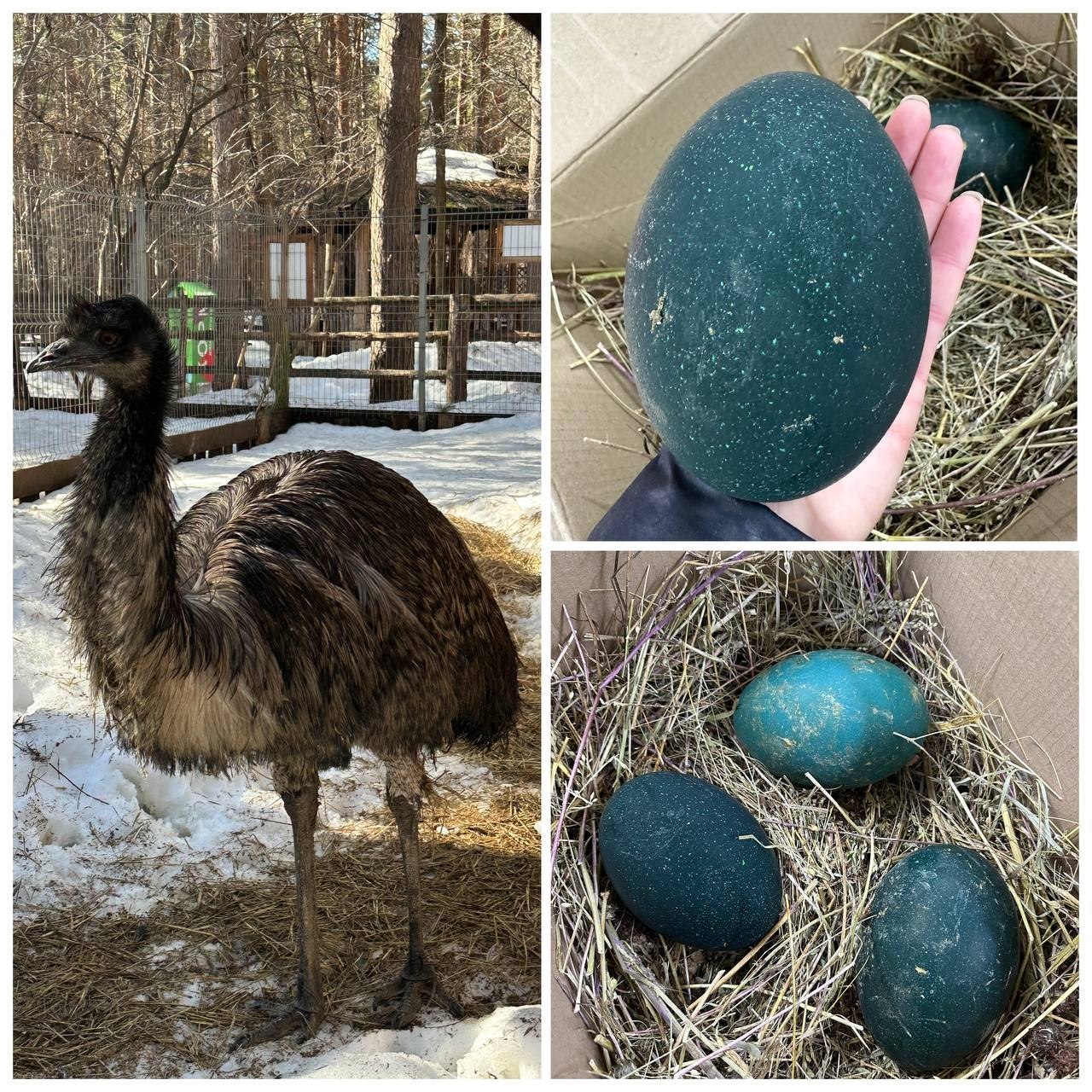 Так выглядят яйца эму — второй по величине птицы в мире. Она откладывает яйца сама, а вот сидит на них отец — примерно 56 дней — таков средний показатель.
