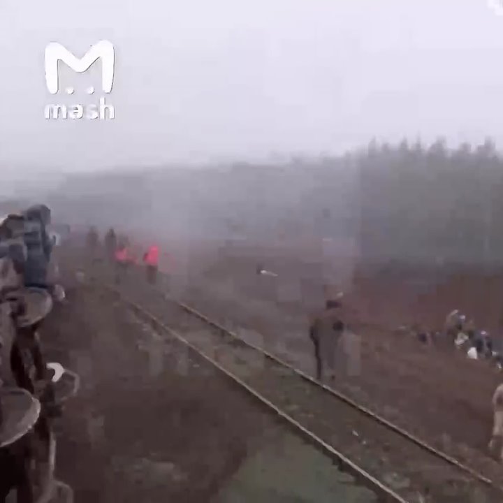 Мужчины забираются на перевёрнутые вагоны и вытаскивают застрявших через окна.