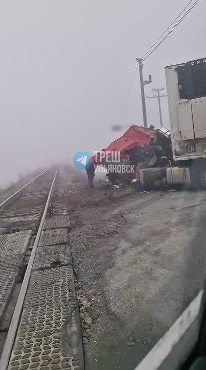 Столкнулись фура и поезд.