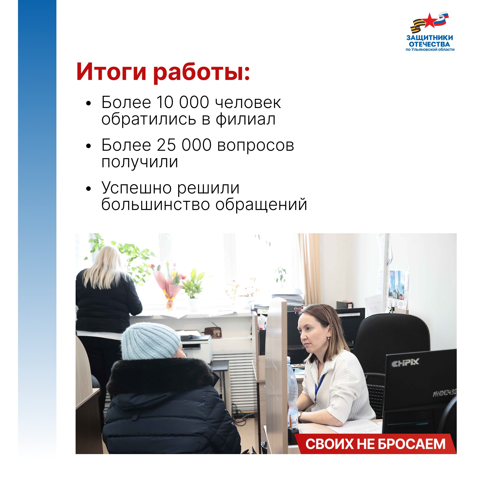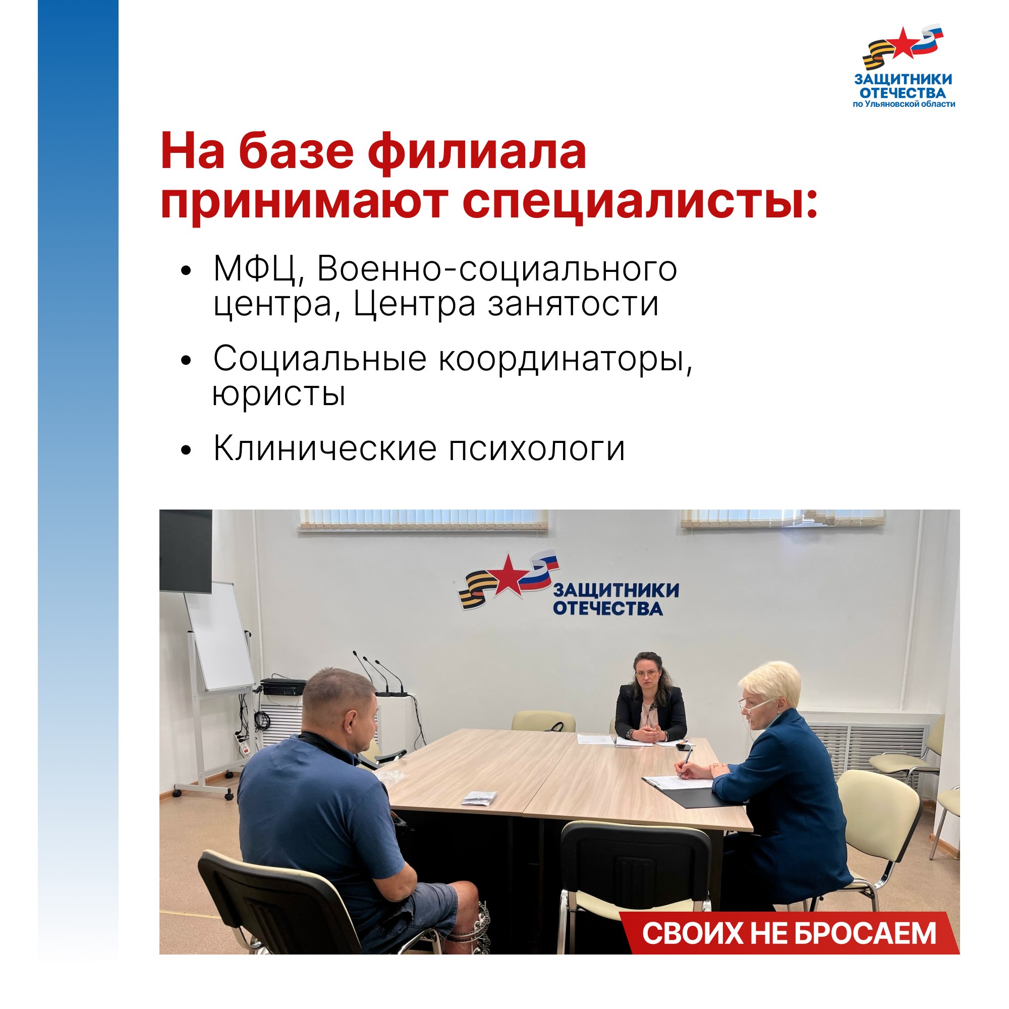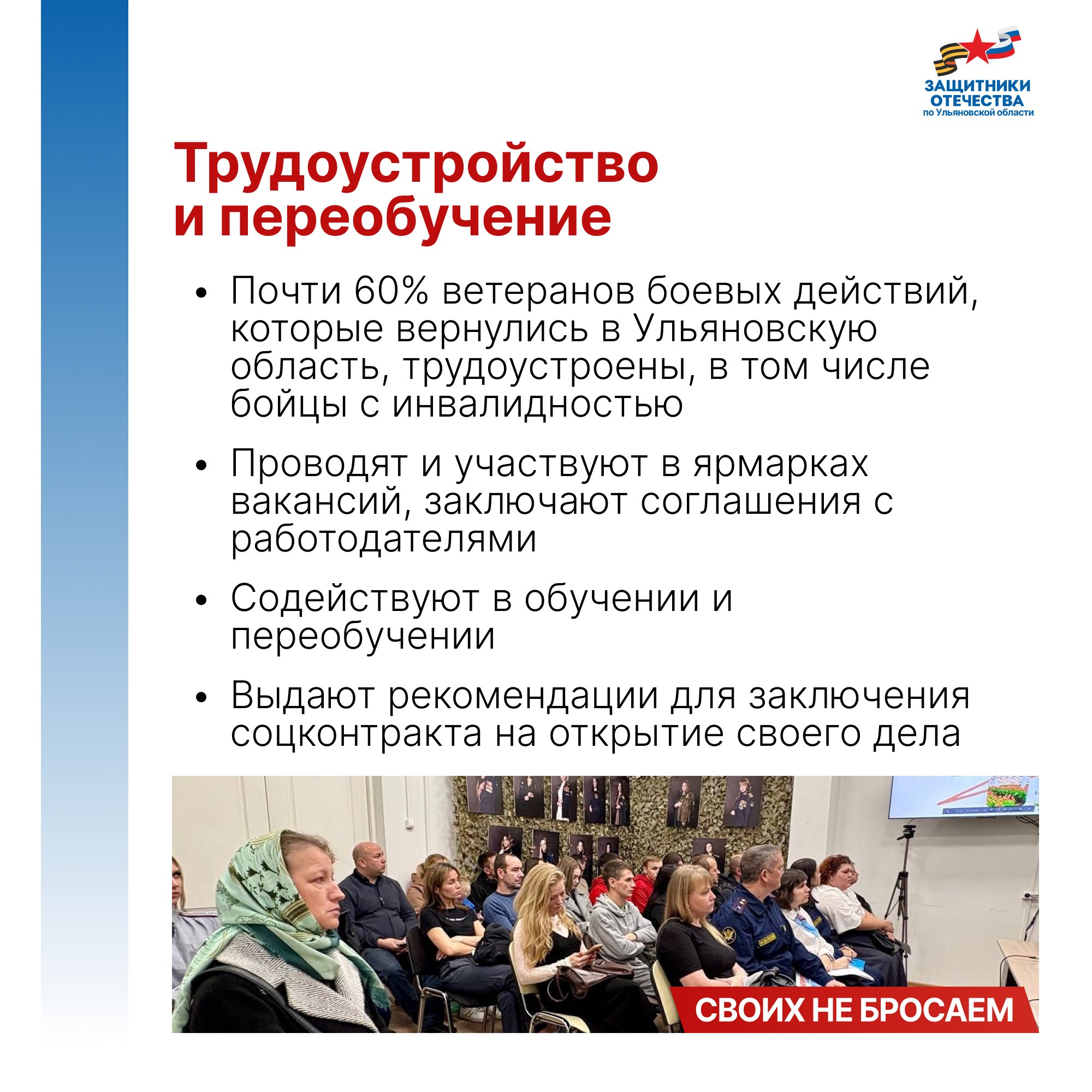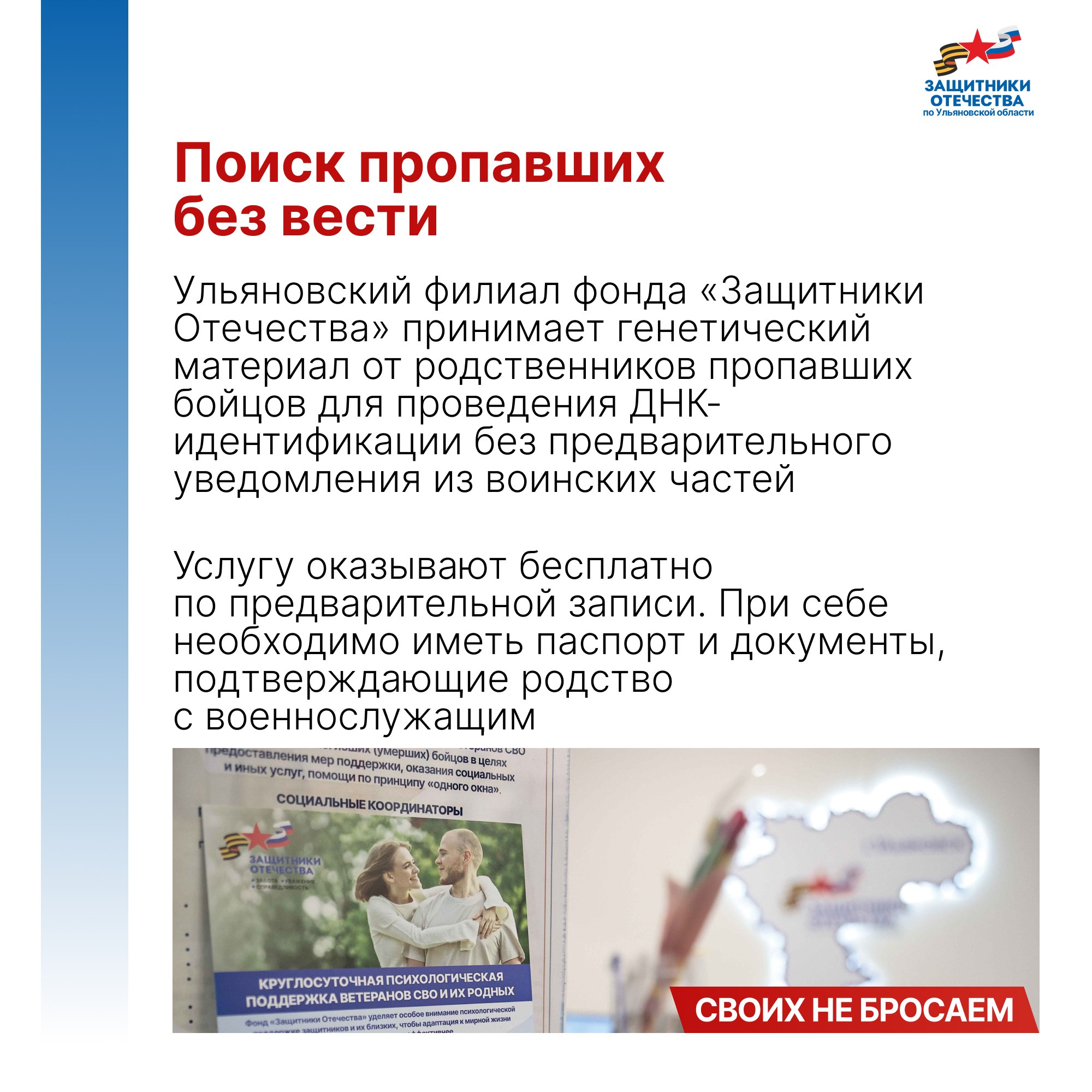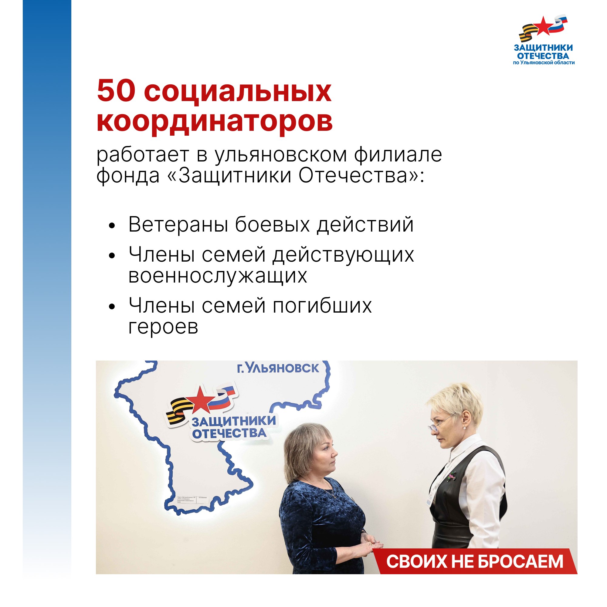 Владимир Путин подписал указ о создании фонда поддержки участников СВО «Защитники Отечества» 3 апреля 2023 года. Председателем фонда стала заместитель Министра обороны РФ, председатель фонда «Защитники Отечества» Анна Цивилева. 1 июня во всех 89 регионах страны, включая Ульяновскую область, начали работать его филиалы. Задача фонда - персональное социальное сопровождение ветеранов СВО и семей погибших бойцов.