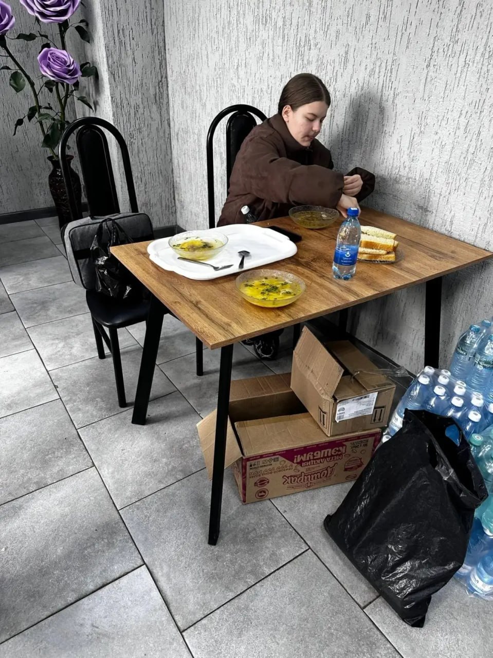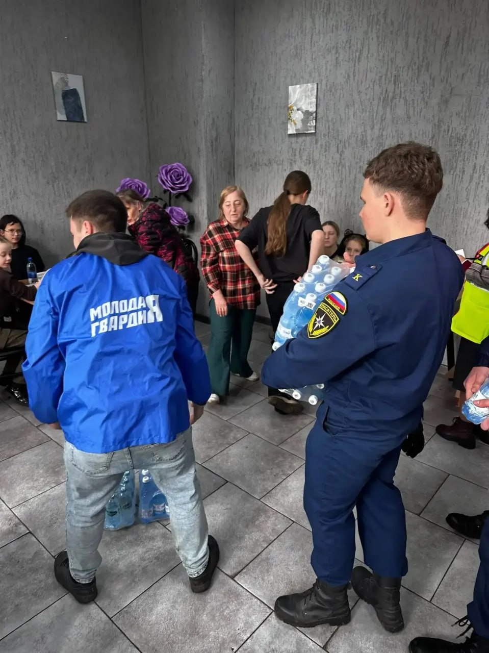 Добровольцы «Единой России» и молодогвардейцы доставили воду для пассажиров и горячие обеды для детей.
