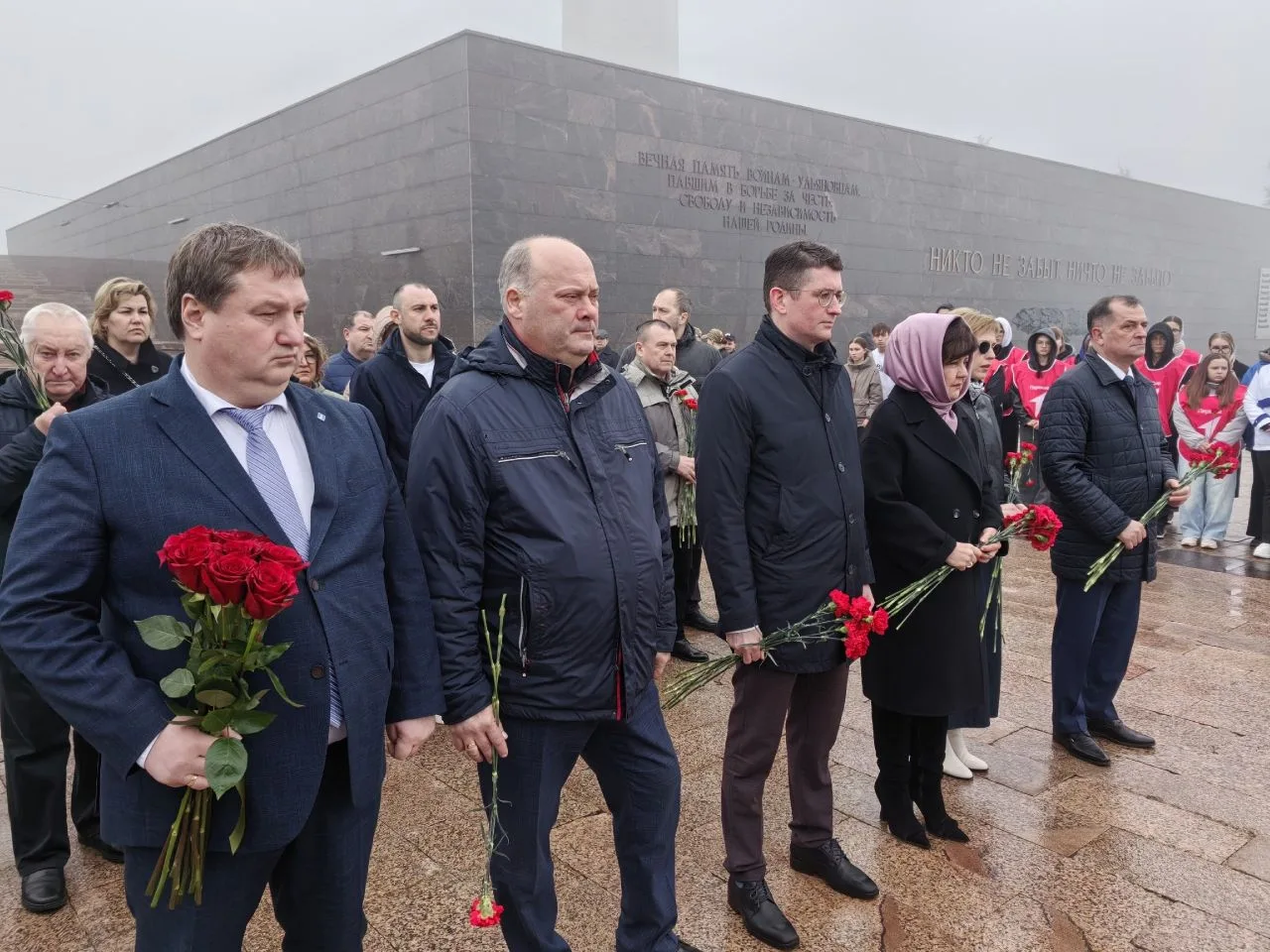 Участники митинга почтили память жертв холокоста минутой молчания и возложили цветы к памятнику «Взрослым и детям, убитым, замученным в плену, пропавшим без вести».
