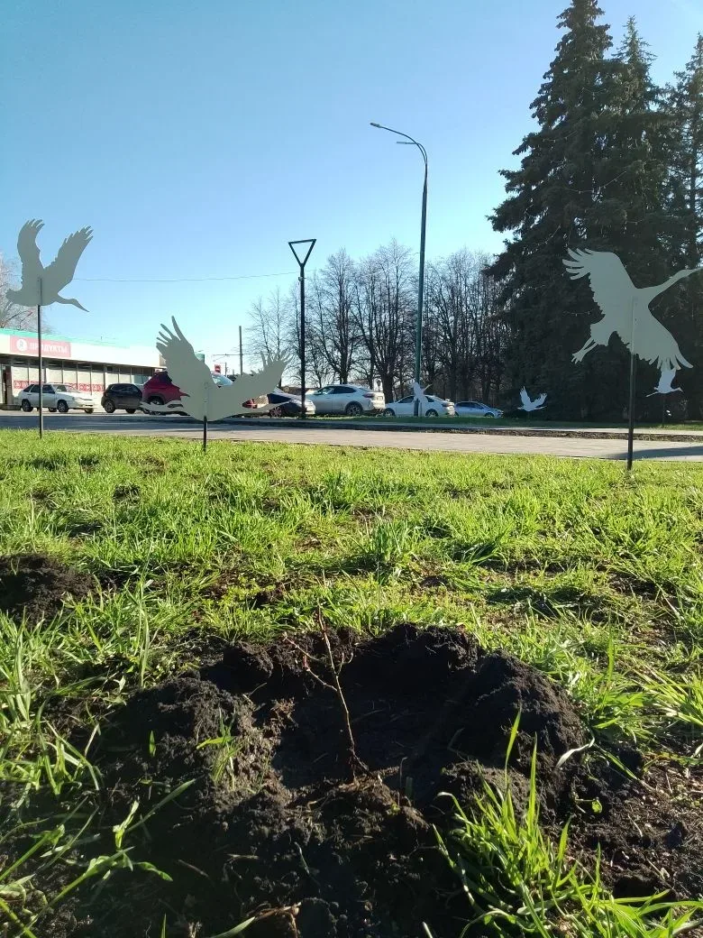 На площади возле железнодорожного вокзала Ульяновска высадили 32 куста парковых роз и еще 130 вечнозелёных можжевеловых кустарников. Как говорят работники Горзеленхоза, они прекрасно дополняют инсталляцию «Журавли»