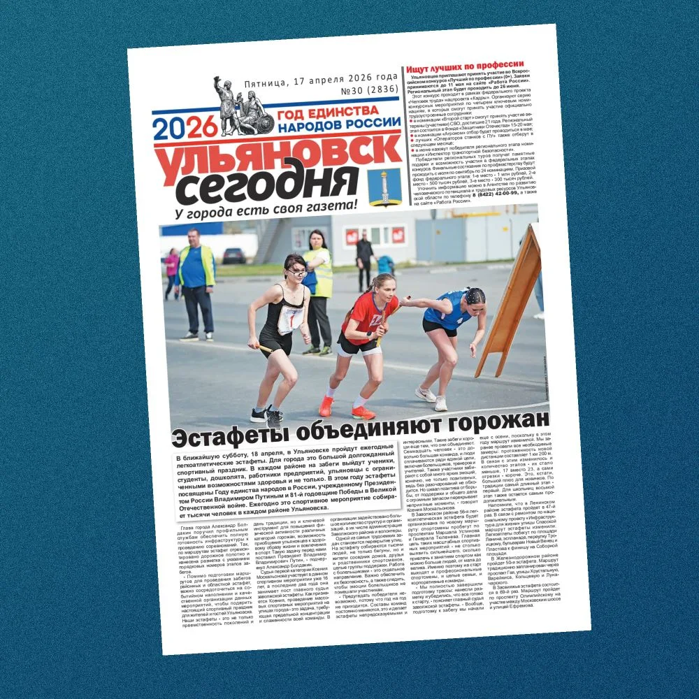 На первой полосе газеты «Ульяновск сегодня» рассказали, о районных легкоатлетических эстафетах