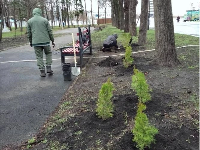 Между эспланадой и Краеведческим музеем уже красуются 18 туй и четыре ивы. Сегодня работники Горзеленхоза посадят там еще 185 кустарников, таких как сирень, серая и японская спирея, кизильник и пузыреплодник. А территорию у Доски Почёта на эспланаде облагородят молоденькие туи, можжевельник, барбарис и пузыреплодник