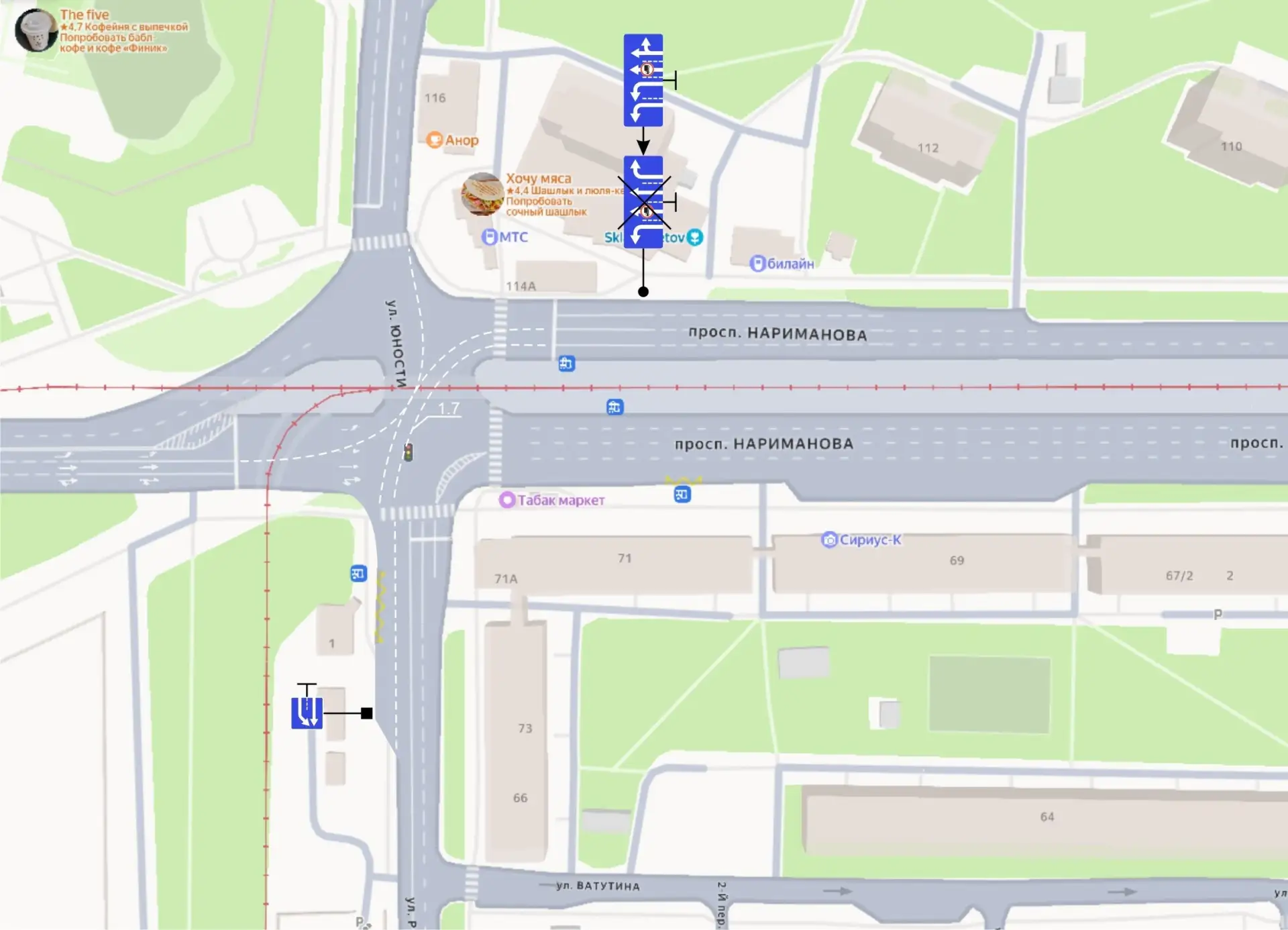 Теперь поворот с Нариманова налево на Репина разрешён с двух левых полос.