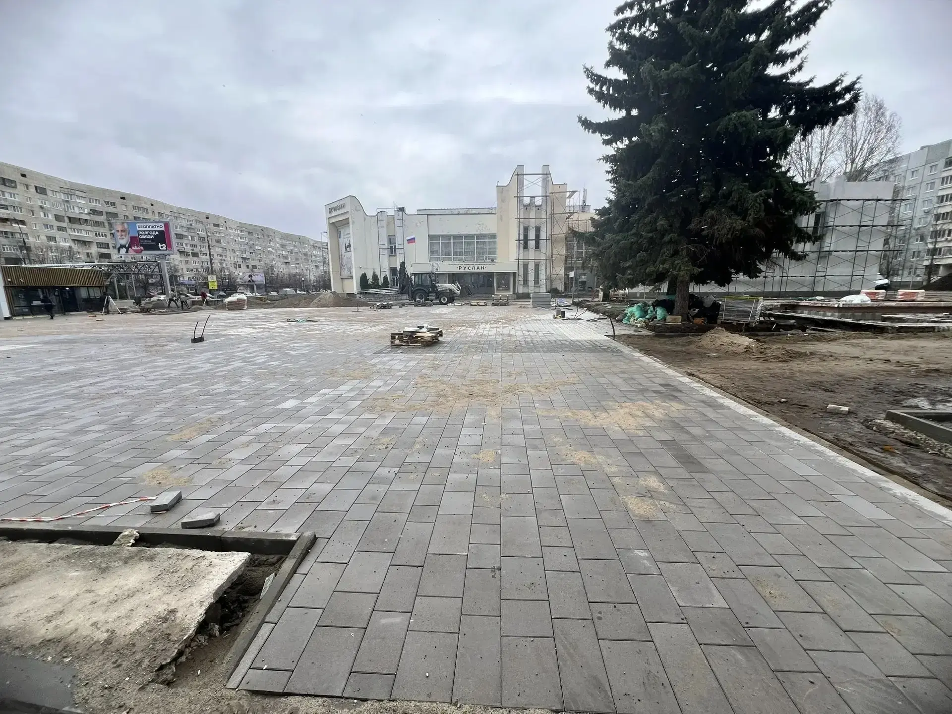 Возле Дворца культуры «Руслан» уложили новую тротуарную плитку