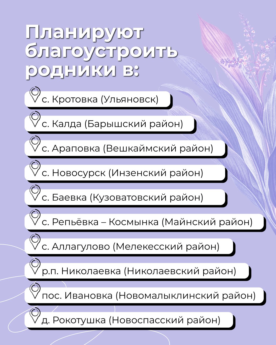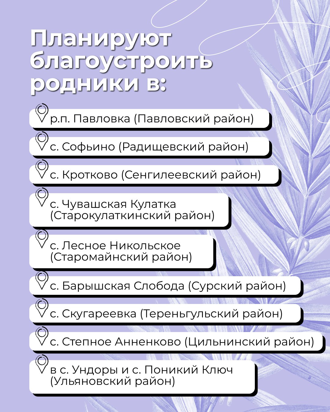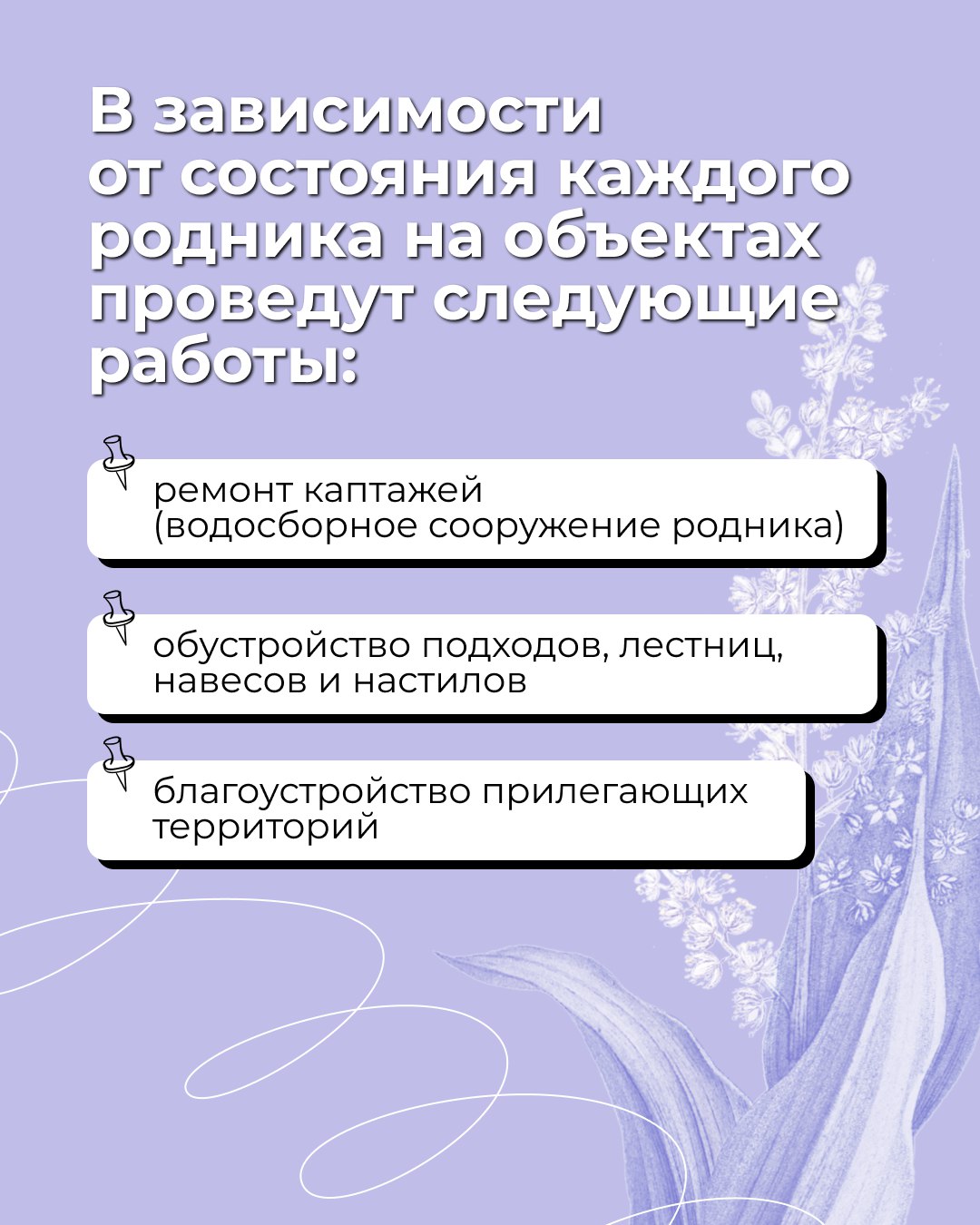 Какие родники приведут в порядок? Список — в карточках.