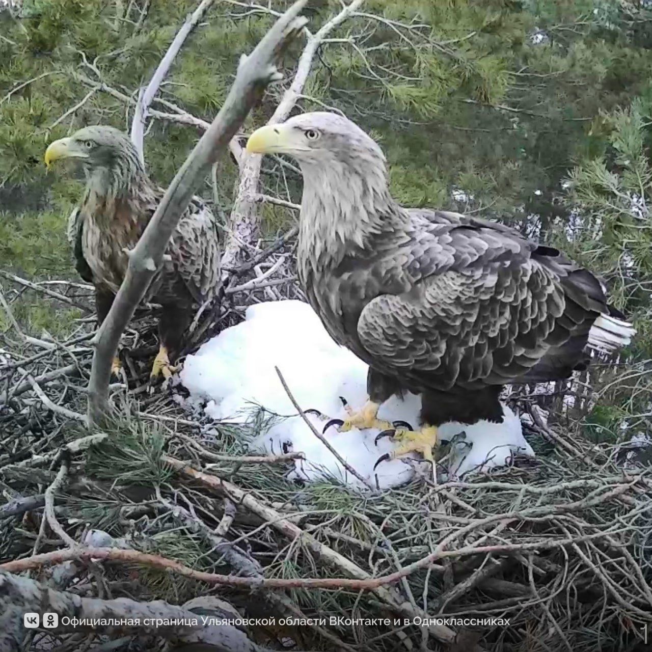 «На гнезде солнечных орлов в национальном парке «Сенгилеевские горы» орлы пока не замечены, но тоже должны появиться в ближайшее время», — поделился орнитолог Михаил Корепов.