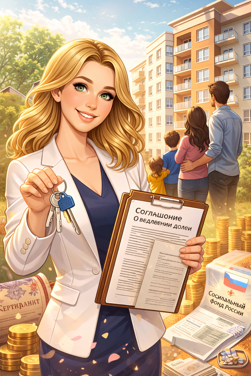 К сожалению, такая ситуация встречается довольно часто. Семья приобретает квартиру, используя материнский капитал, и после получения средств от Социального фонда России родители подписывают обязательство о выделении долей своим детям.