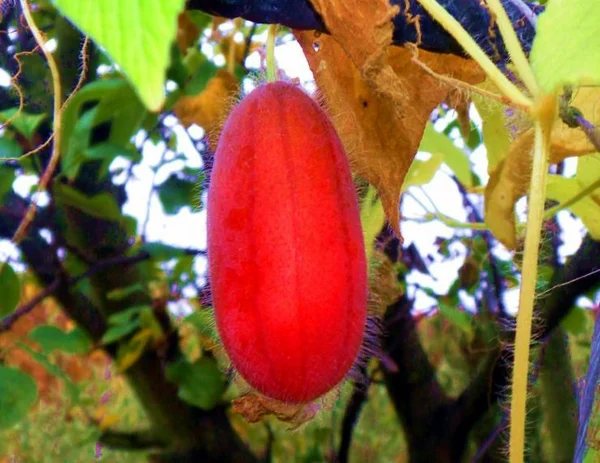 Тладианта, известная также как красный огурец, – это многолетняя лиана, родом из Китая, которая прекрасно адаптировалась к нашему климату. Цветет с июня до сентября и привлекает внимание своими яркими плодами.
