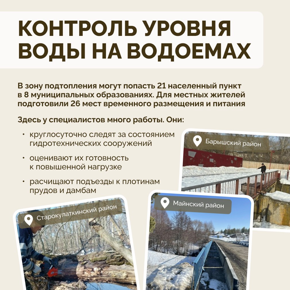 В регионе работает Единая система предупреждения и ликвидации чрезвычайных ситуаций (РСЧС). В нее входят федеральные, региональные и муниципальные службы. На особом контроле – состояние гидротехнических сооружений и контроль уровня воды в водоемах.
