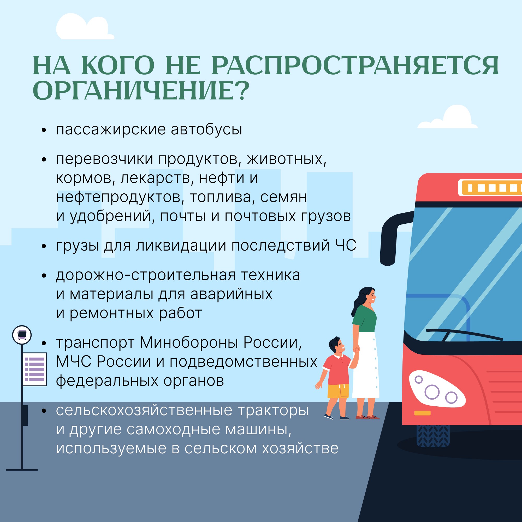 На какой период вводят ограничение? На какие перевозки не распространяется это правило? Рассказываем – в карточках.