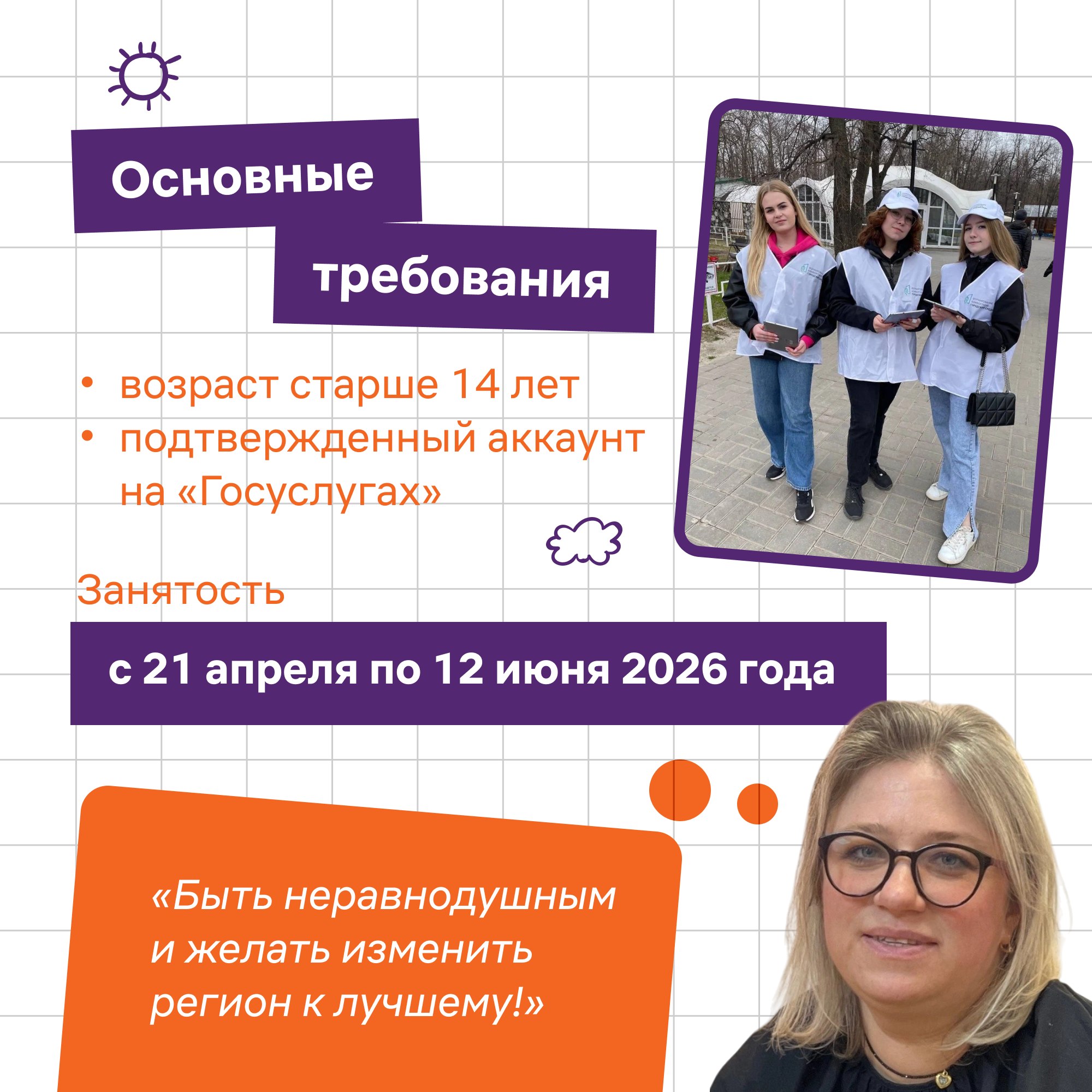Основные требования, мотивация и задачи – в карточках. А стать частью команды можно на портале Добро.рф: vk.cc/cVnJGw