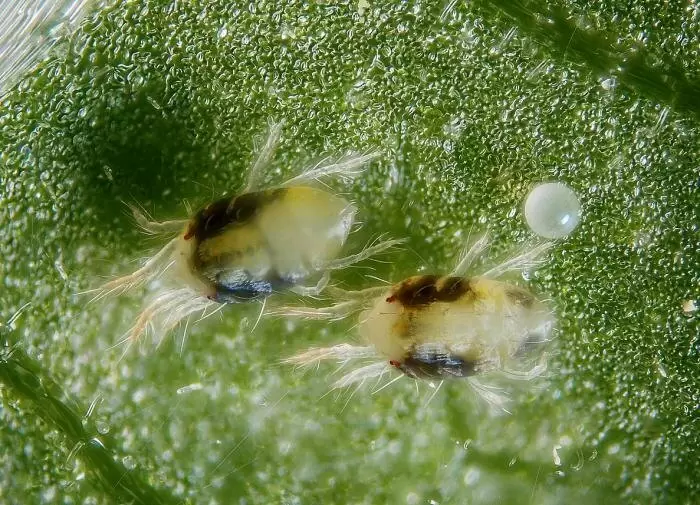 Распознать паутинного клеща можно по следующим признакам: