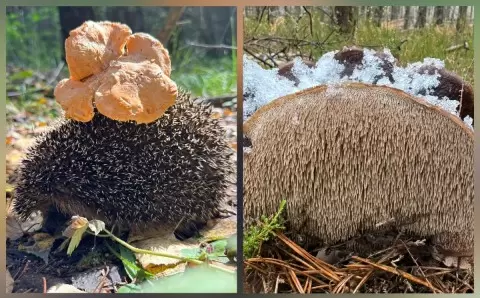- Ежовик жёлтый (Hydnum repandum) — излюбленный деликатес, обладающий крепкой, ароматной мякотью и сладковатым вкусом. Его легко распознать по кремовой или желтоватой шляпке с ломкими шипиками.