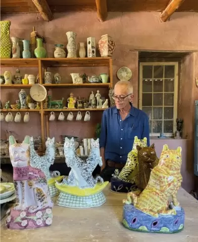 Частые персонажи его работ — керамические кошки и собаки, а также ангелы и фигуры, вдохновленные личными и мировыми событиями. Каждая из работ заставляет зрителей задуматься над более глубокими вопросами.