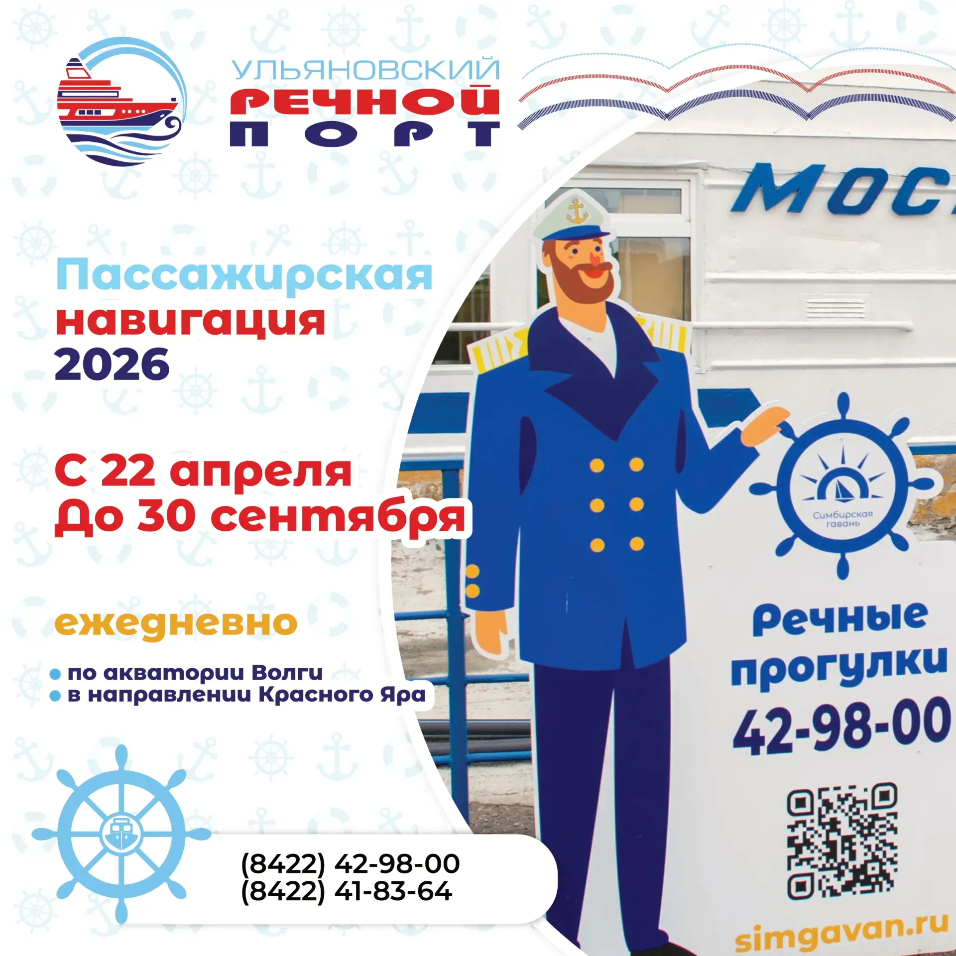 В первый рейс теплоход от ульяновского речпорта отправится 22 апреля в 11:00. Каждому третьему пассажиру обещают бесплатную речную прогулку