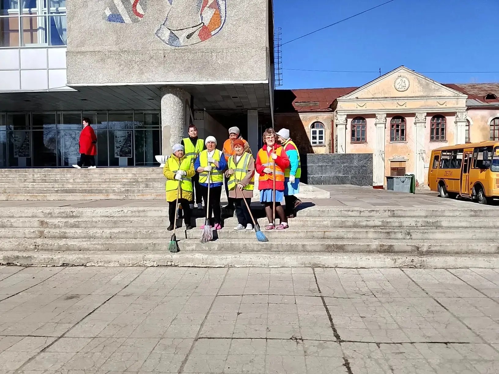 Помимо привычного сбора мусора и листвы, проводится мойка, а также покраска фасадов зданий.