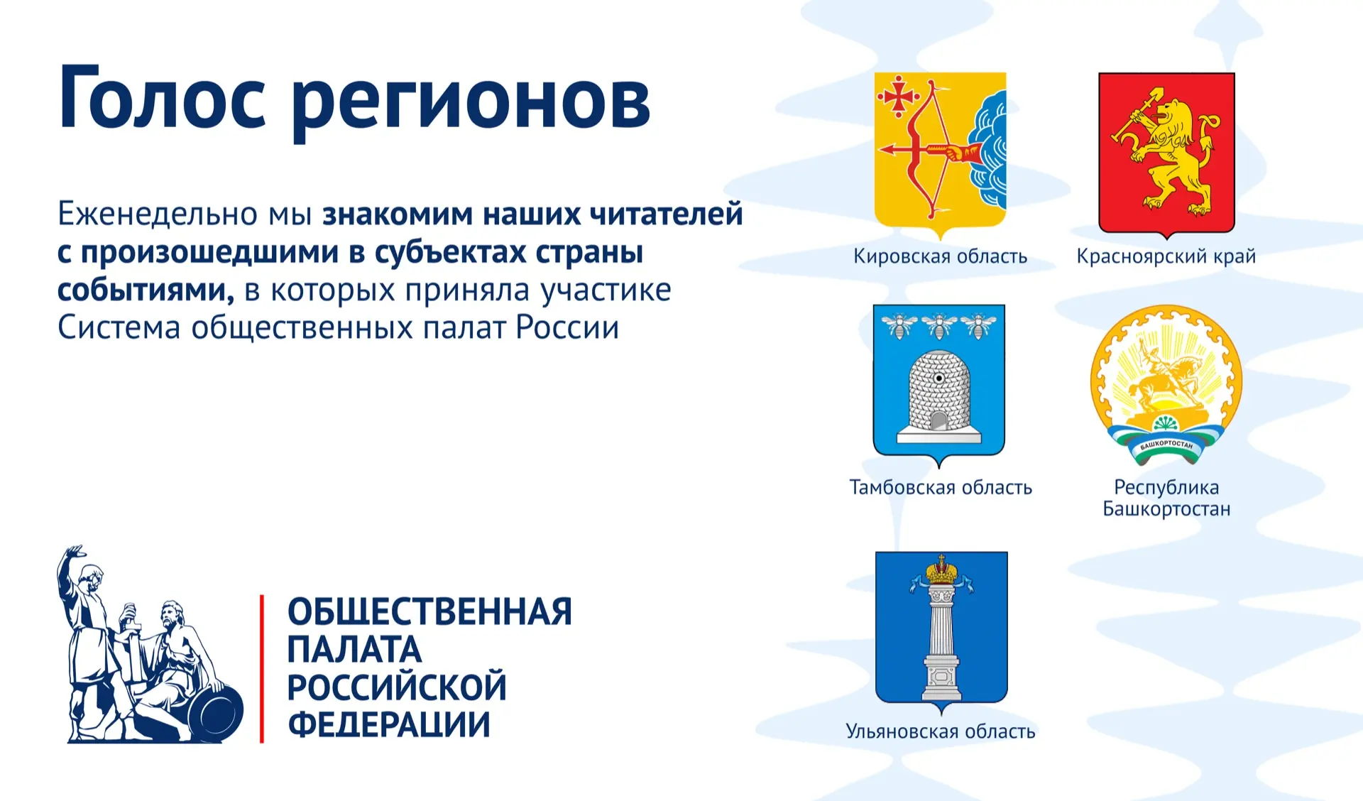 На этой неделе в регионах России состоялись заседания комиссий общественных палат, посвященные мониторингу городских пространств, поддержке образовательных и патриотических проектов, развитию молодежной инфраструктуры и оценке хода строительства социальных объектов.