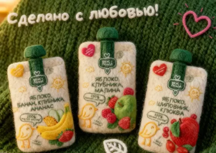 Упаковка нового продукта, выполненная в форме пауча, разработана с учетом современных технологий искусственного интеллекта и при участии профессиональных дизайнеров. Это придаёт продукту современный вид и обеспечивает удобство для родителей.