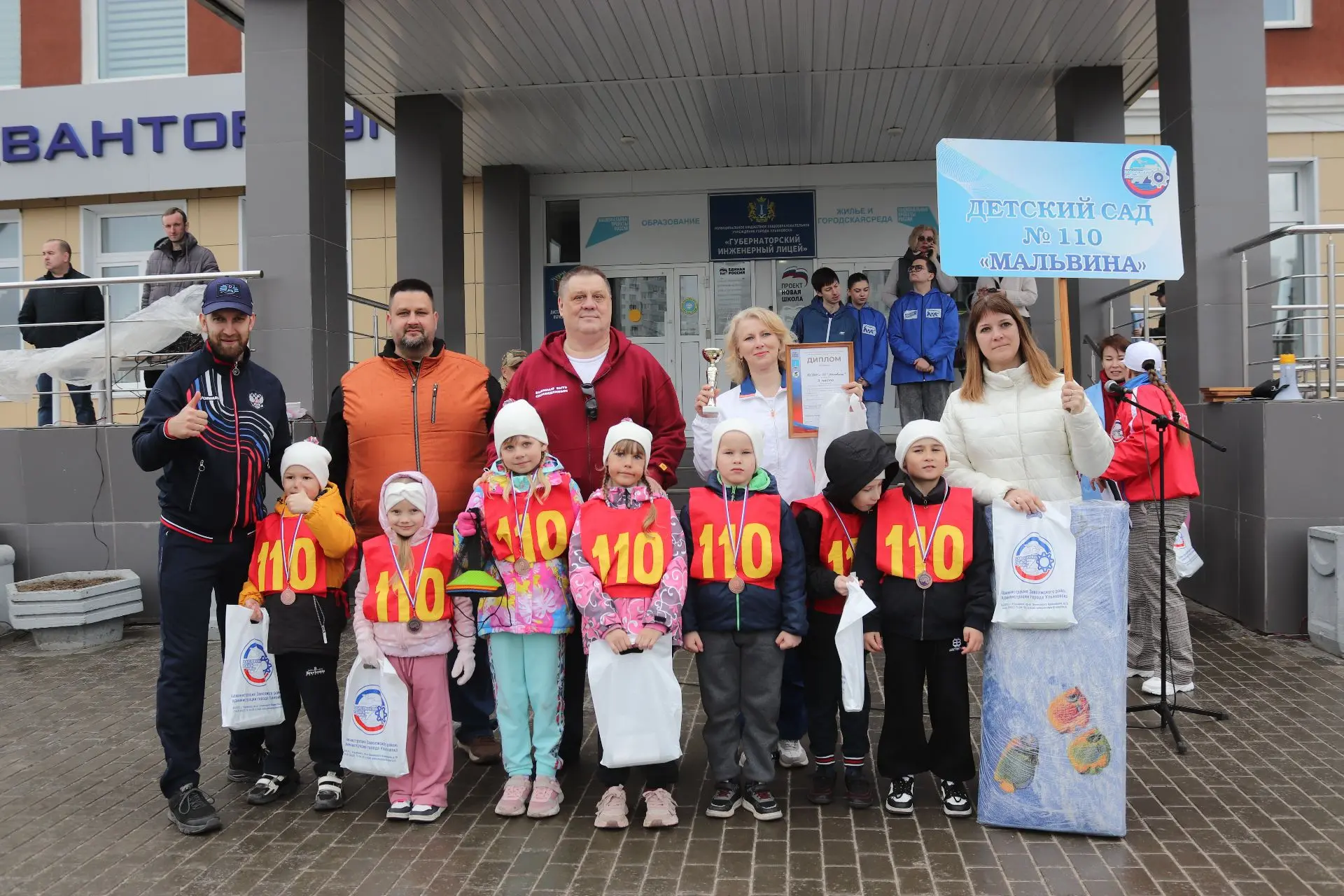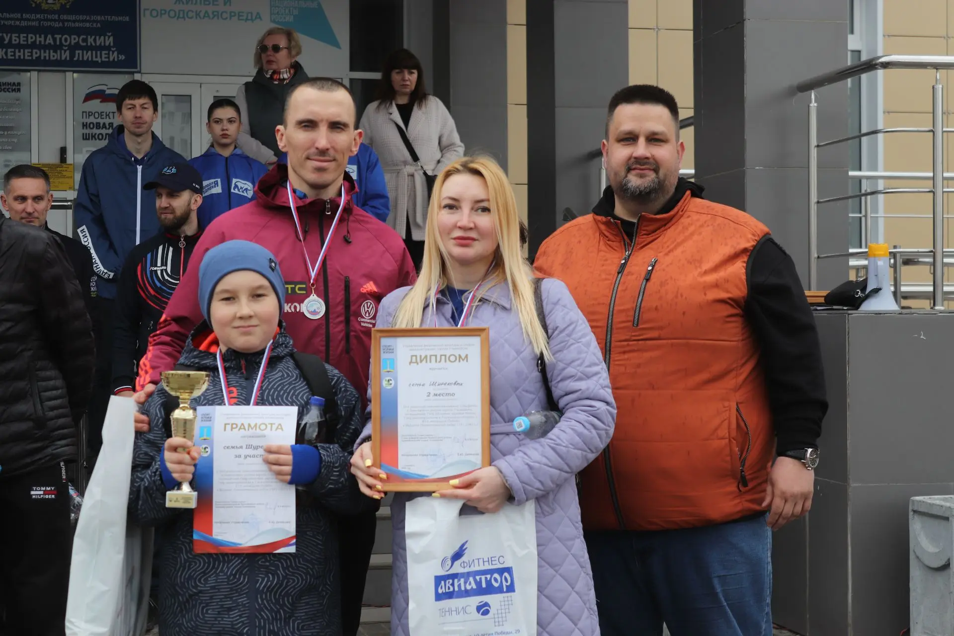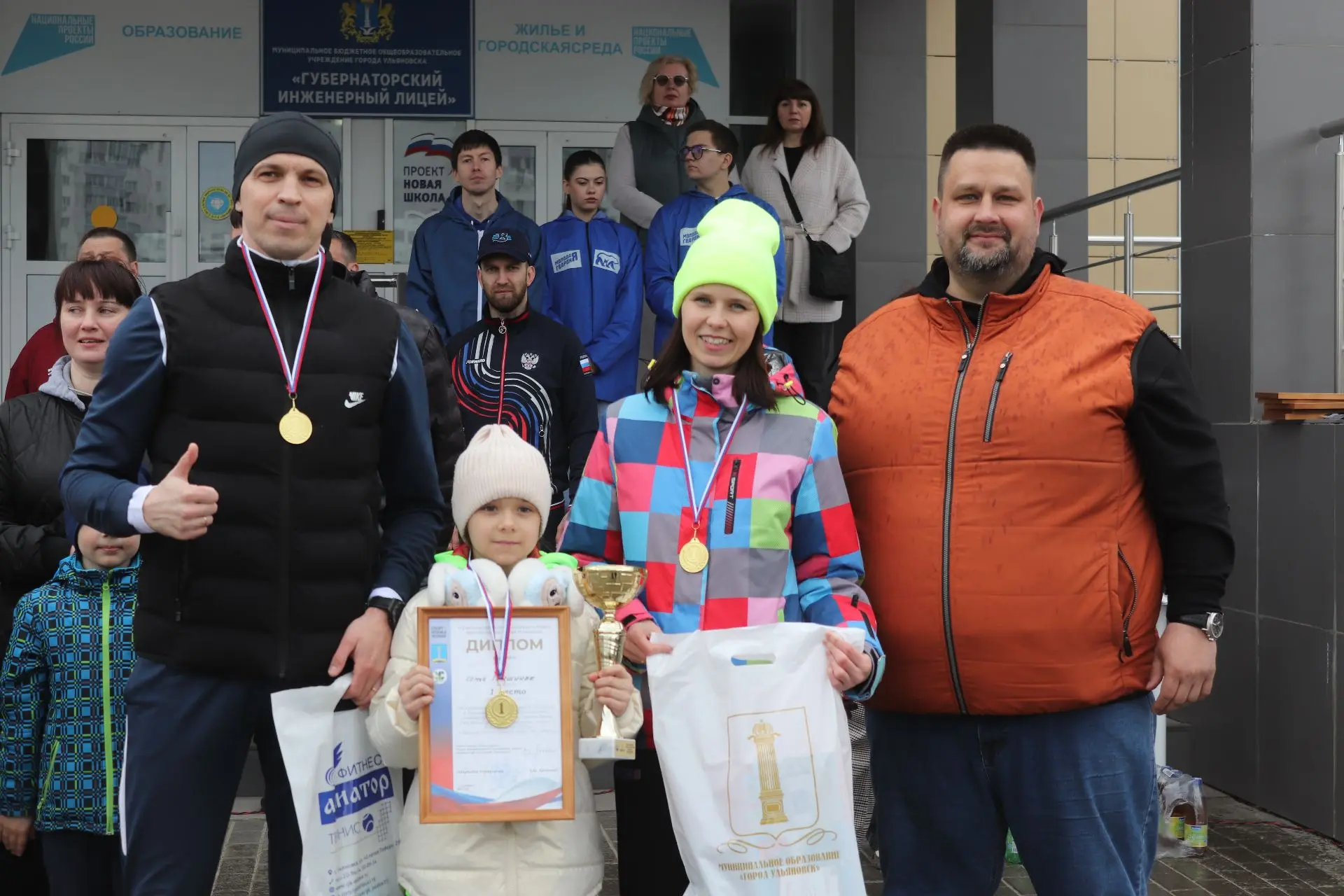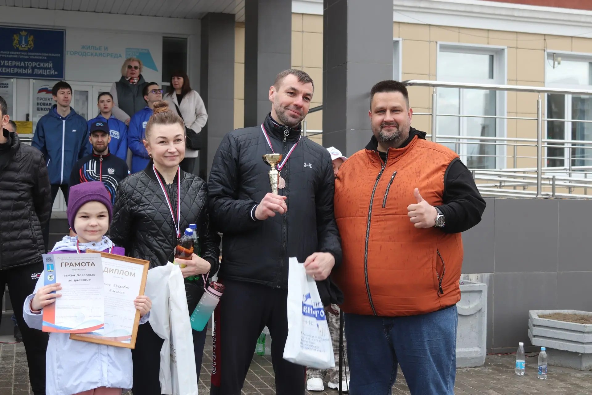 На старт стадиона 102-го губернаторского лицея вышли самые юные участники и семейные команды. По итогам напряжённой борьбы места распределились следующим образом: