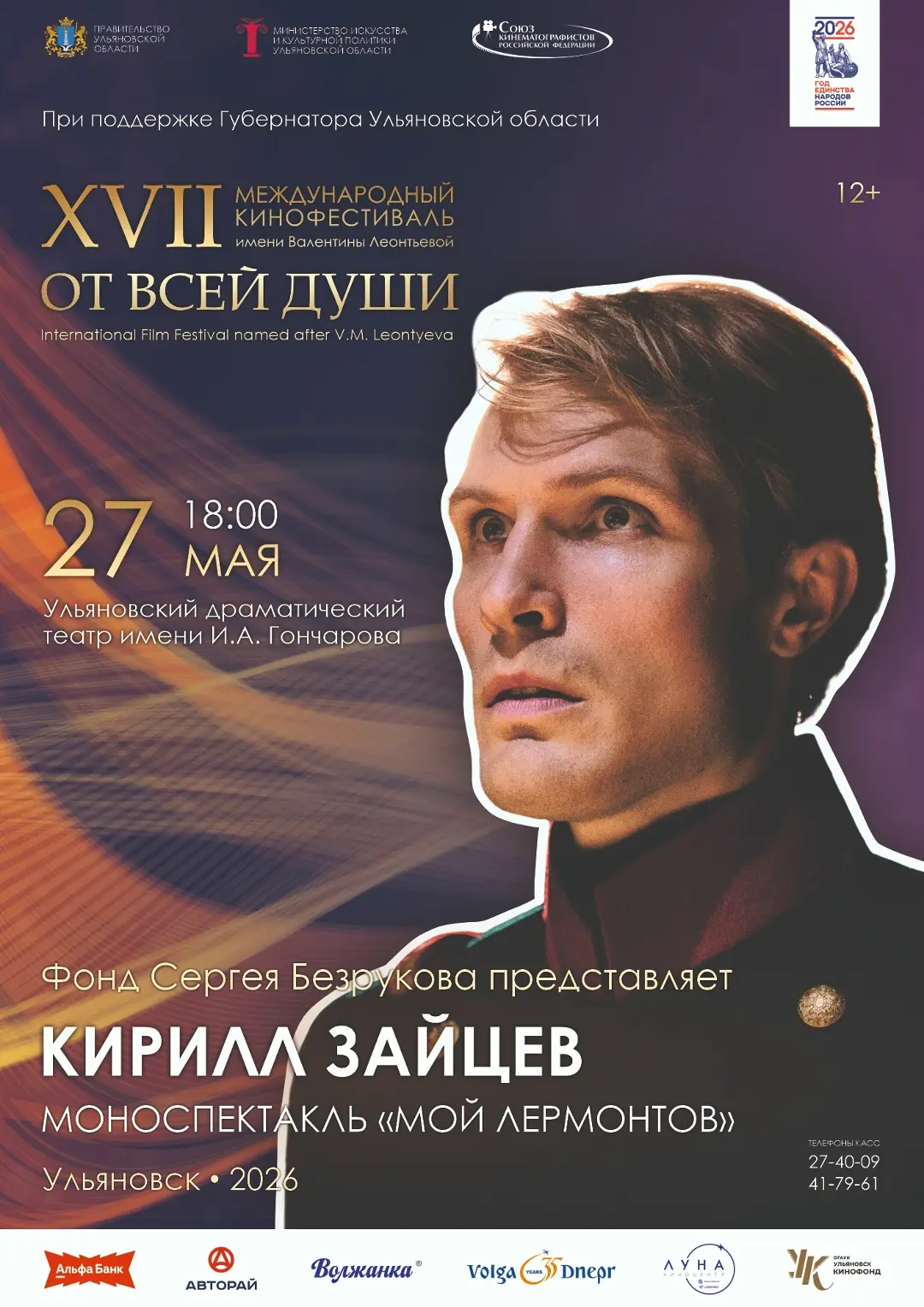 Его показ пройдет 27 мая на сцене Ульяновского драматического театра имени Гончарова с участием известного российского актера театра и кино Кирилла Зайцева. Постановка посвящена последним дням жизни Михаила Лермонтова на Кавказе и приурочеа к 185-летию со лня гибели поэта
