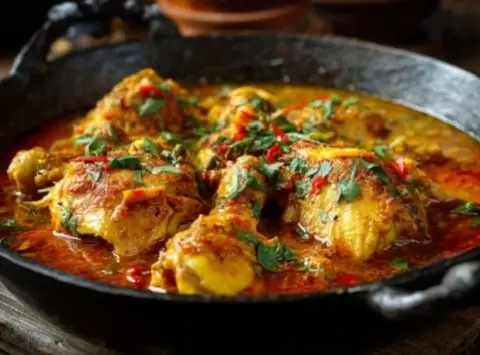 3. Создание соуса: На той же сковороде обжаривается лук до мягкости, затем добавляется томатная паста и нарезанные помидоры. После того как помидоры начнут выделять сок, курица возвращается в сковороду. Тушение продолжается на медленном огне, накрытой крышкой, 25-35 минут.