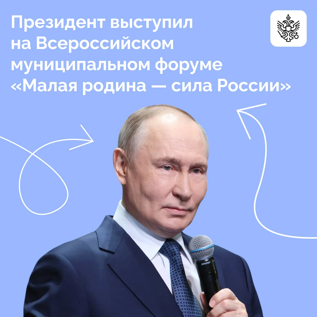 Владимир Путин выступил на третьем Всероссийском муниципальном форуме «Малая родина — сила России»