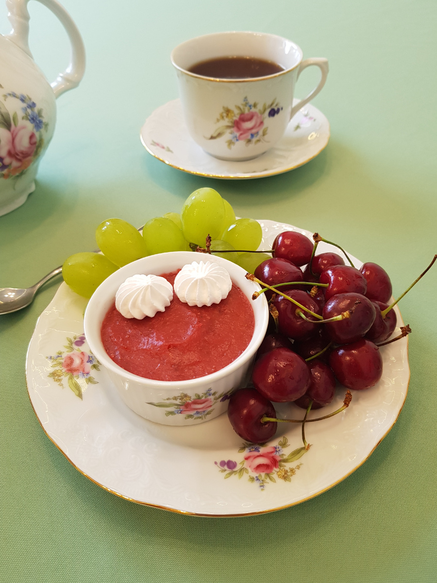 Разлейте пудинг по формочкам и дайте ему остыть. Для особого вкусового акцента можно украсить десерт безе, черешней и виноградом. Этот пудинг станет отличным завершением любой трапезы и порадует гостей.