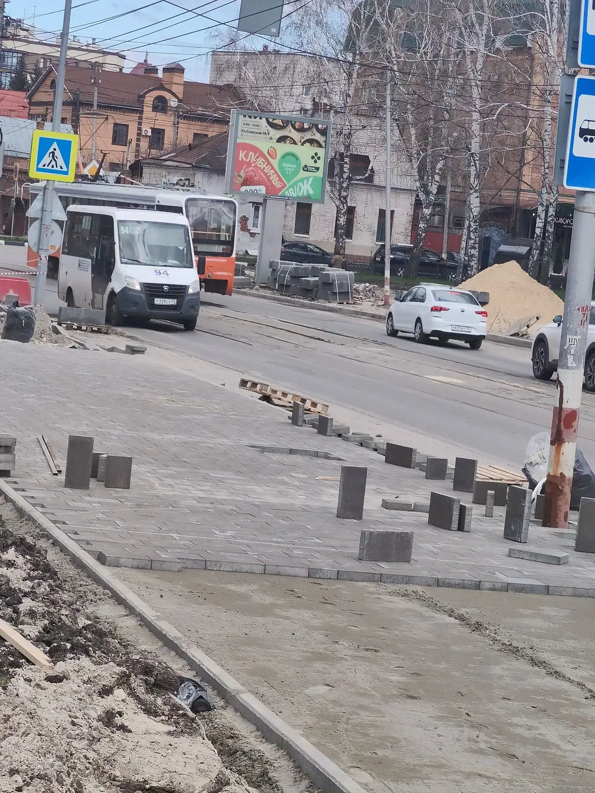 На улице Спасской начали укладывать новую тротуарную плитку